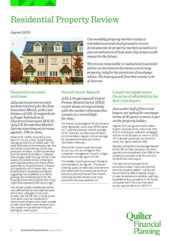 Residential Property Review - August 2020